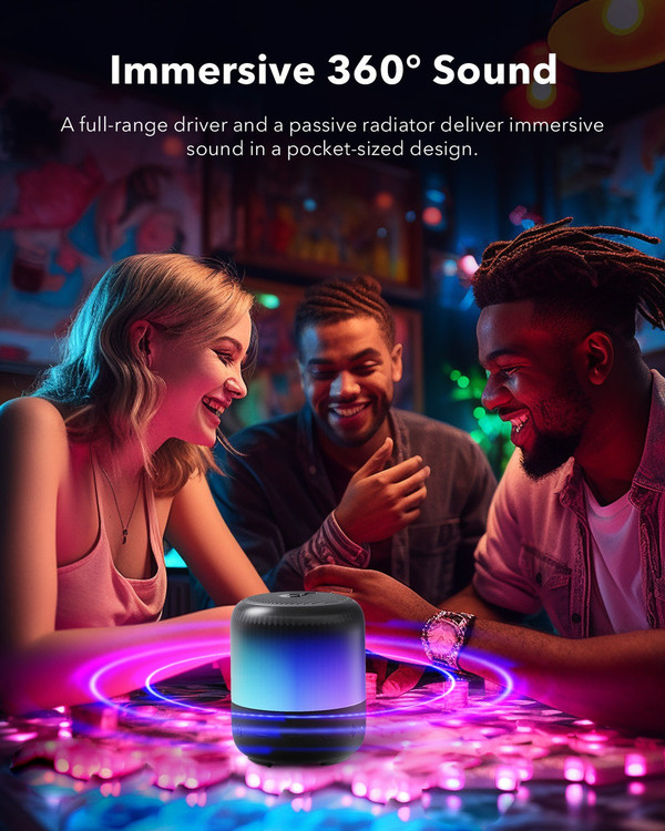 این اسپیکر از یک درایور فول رنج ۱.۷۵ اینچی و یک رادیاتور غیرفعال برای افزایش عمق باس بهره میبرد و توان خروجی آن ۸ وات است. پخش صدای 360 درجه و فناوری BassUp اختصاصی انکر باعث میشود صدا در تمامی جهات بهصورت یکنواخت پخش شود و بیس قابلتوجهی برای یک اسپیکر در این اندازه تولید گردد. این ویژگی بهویژه در فضاهای باز و مهمانیها عملکرد بسیار خوبی دارد.