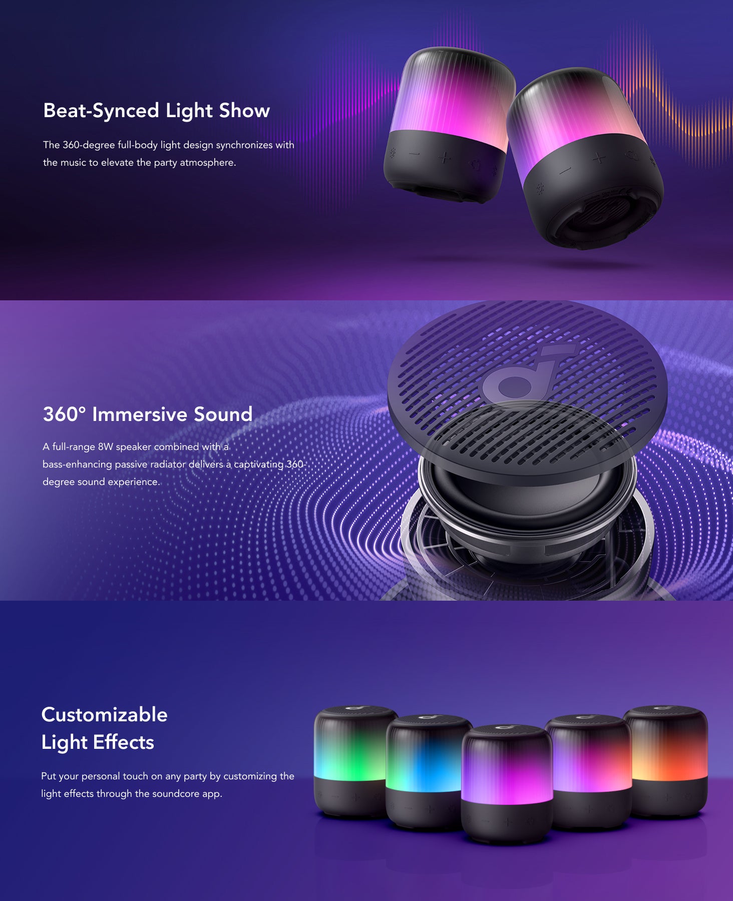 مشخصات فنی کامل اسپیکر انکر مدل A3136 (Soundcore Glow Mini):