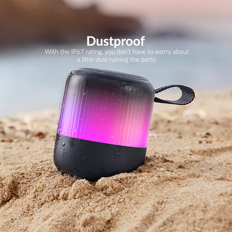 Glow Mini از استاندارد IP67 پشتیبانی میکند، به این معنا که در برابر نفوذ گرد و غبار کاملاً مقاوم بوده و در برابر غوطهوری کوتاهمدت در آب نیز محافظت میشود. این قابلیت، اسپیکر را به گزینهای ایدهآل برای استفاده در فضای باز، ساحل، استخر و کوهنوردی تبدیل کرده است.