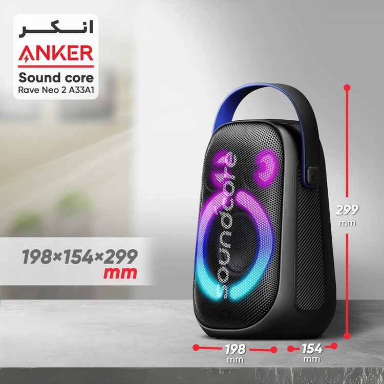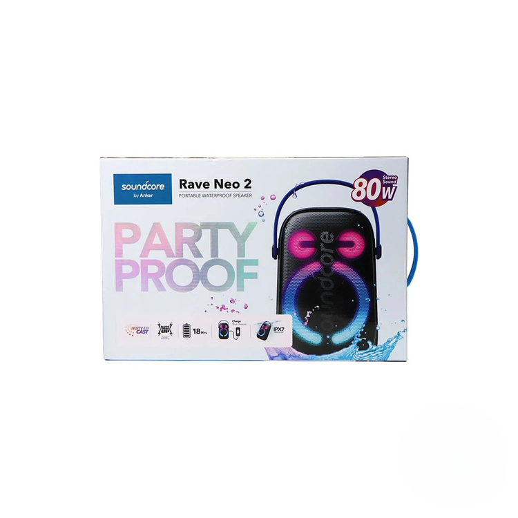 اسپیکر بلوتوثی Anker Soundcore Rave Neo 2 A33A1 با صدای پرقدرت 80 واتی، نورپردازی هماهنگ با موسیقی، مقاومت کامل در برابر آب و باتری بادوام، یکی از بهترین گزینهها برای مهمانیها و فضاهای بیرونی است. ترکیب عملکرد حرفهای، طراحی مستحکم و قابلیتهای مدرن مانند PartyCast و PowerIQ باعث شده این مدل به یکی از محبوبترین اسپیکرهای قابل حمل انکر تبدیل شود.