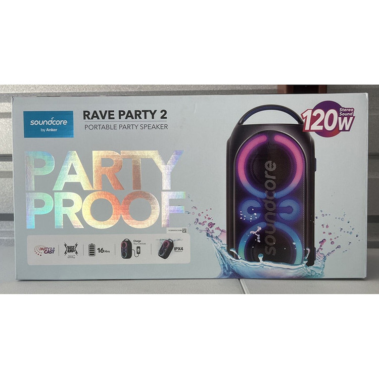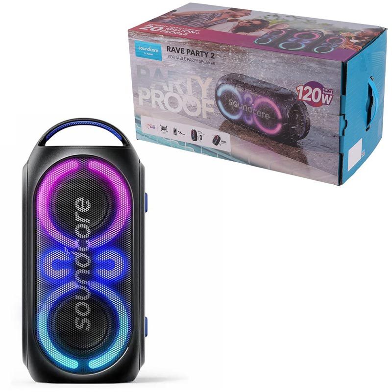 اسپیکر Anker Soundcore Rave Party 2 (مدل A3399Z11) یک اسپیکر پرتابل با توان خروجی 120 وات است که برای مهمانیها و استفاده در فضای باز طراحی شده است. د