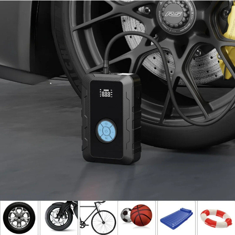 پمپ باد داخلی آن با حداکثر فشار ۱۶۰ PSI (معادل ۱۱ بار) طراحی شده و به کمک نمایشگر دیجیتال، امکان تنظیم و مشاهده فشار دقیق را فراهم میکند. این ویژگی برای باد کردن لاستیک خودرو، موتور، دوچرخه، توپ یا وسایل بادی بسیار کاربردی است.