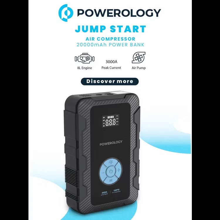 پاورولوژی مدل PPBCHA43 یک دستگاه چندکاره و قدرتمند است که سه عملکرد اصلی را در خود جای داده است: پاوربانک پرظرفیت، جامپاستارتر خودرو، و پمپ باد قابلحمل. این ترکیب هوشمند باعث شده دستگاه، ابزاری ضروری برای رانندگان و مسافران باشد تا در شرایط اضطراری بتوانند خودرو را روشن کنند، لاستیک را باد بزنند یا دستگاههای الکترونیکی خود را شارژ نمایند.