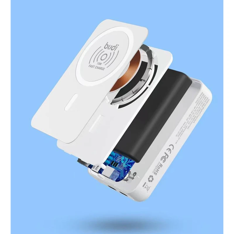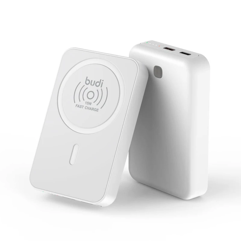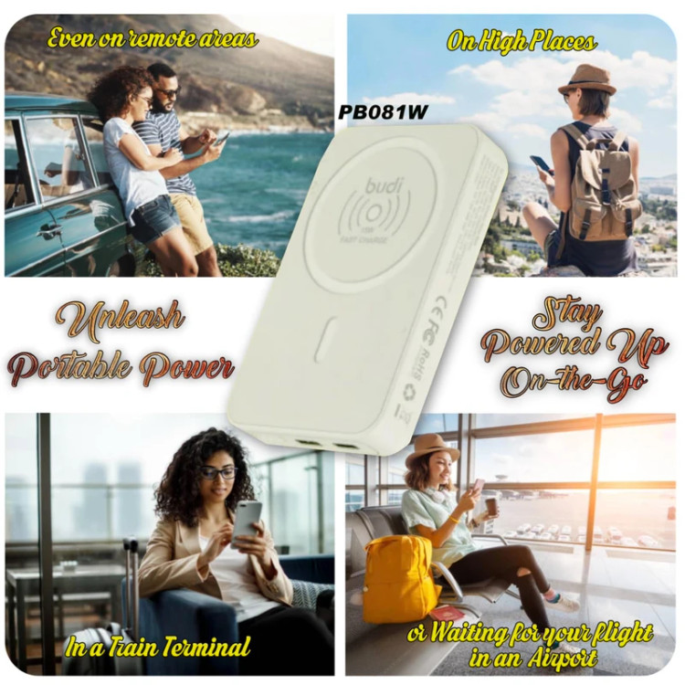 پاوربانک Budi PB081W با ظرفیت 10000 میلیآمپر ساعت یک شارژر قابل حمل حرفهای و هوشمند است که برای کاربران گوشیهای هوشمند و دستگاههای مجهز به فناوری MagSafe و Qi طراحی شده است. این پاوربانک ترکیبی از شارژ سریع، ایمنی بالا، طراحی جمعوجور و کاربردی را ارائه میدهد و برای استفاده روزمره، سفر، رانندگی و شرایط اضطراری ایدهآل است.