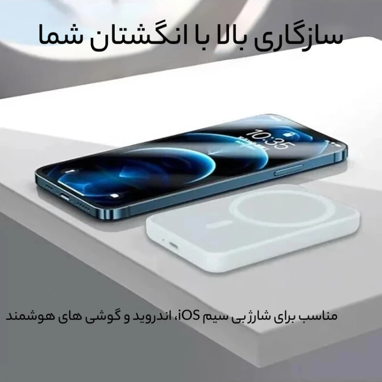 این پاوربانک با تمامی دستگاههای مجهز به فناوری MagSafe و Qi، از جمله آیفون 12 و بالاتر، کاملاً سازگار است. همچنین میتوان از آن برای شارژ سریع دستگاههای اندرویدی، تبلتها و سایر لوازم دیجیتال از طریق پورتهای USB-C و USB-A استفاده کرد.