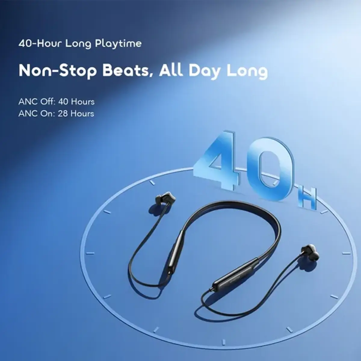 Oraimo Necklace 5 — هدفون گردنبندی بیسیم با عمر باتری تا ۴۰ ساعت، ANC فعال، شارژ سریع (۱۰ دقیقه → تا ۱۲ ساعت پخش)، Sound360 Spatial Audio و هشدار ویبره تماس. سبک، راحت و مقاوم در برابر تعریق (IPX4) — مناسب برای کار، ورزش سبک و استفاده روزمره. نسخه Tahsan Tuned دارای تنظیم صوتی ویژه است.