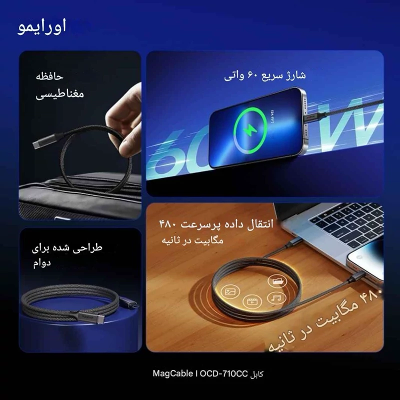 کابل دو سر تایپسی مگنتی اورایمو یک انتخاب هوشمند برای کاربرانی است که به دنبال سرعت، دوام و سهولت استفاده هستند. طراحی مغناطیسی باعث میشود اتصال راحتتری داشته باشید، روکش مقاوم دوام طولانی تضمین میکند، و تراشه هوشمند امنیت دستگاه را بالا میبرد.