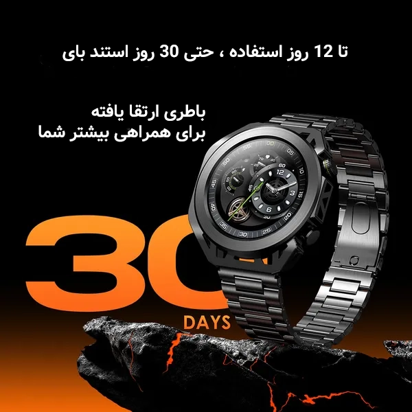 باتری قدرتمند این ساعت تا 10 روز استفاده مداوم و تا 20 روز در حالت استندبای دوام دارد. شارژ مغناطیسی سریع نیز باعث میشود در مدت کوتاهی آماده استفاده مجدد باشد.