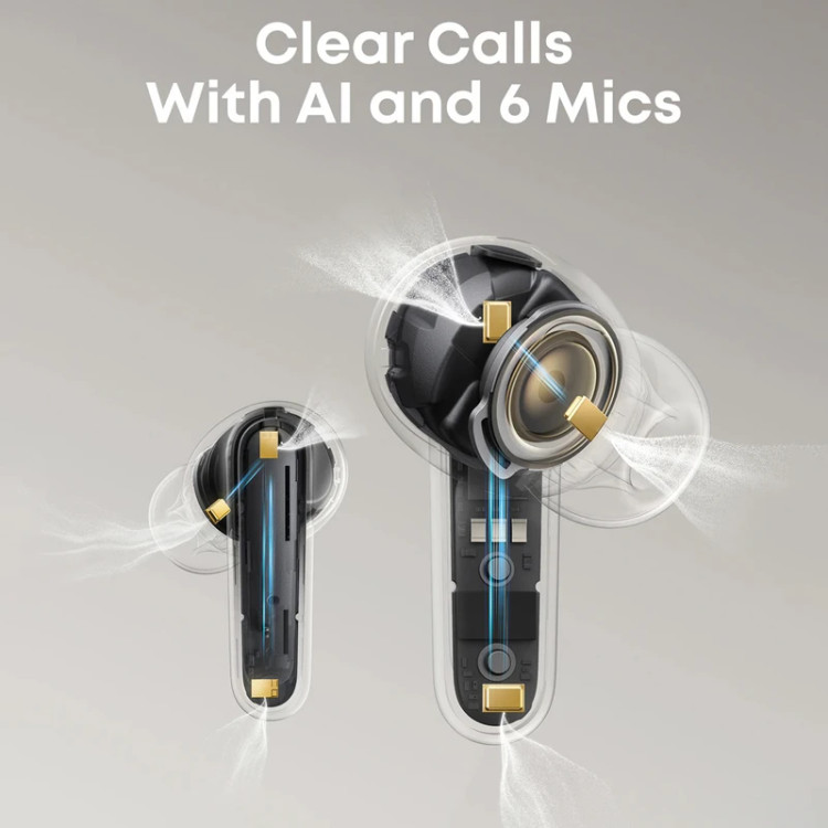 علاوه بر ANC، سیستم AI Noise Reduction نیز برای تماسها فعال است. این سیستم با ۶ میکروفون، صدای شما را از نویز محیط جدا و تقویت میکند. حتی در محیطهای شلوغ، صدای شما شفاف و بدون نویز منتقل میشود.