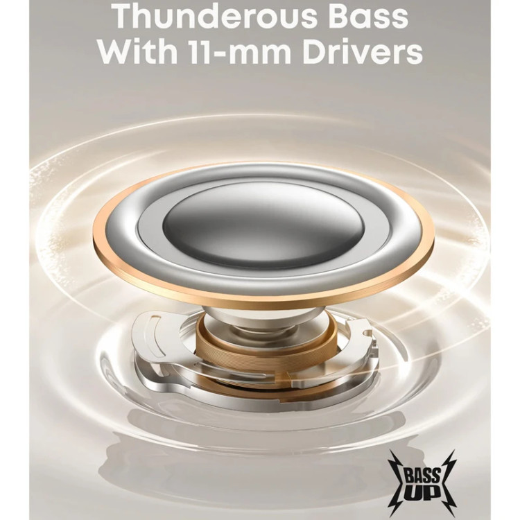 فناوری صوتی BassUp به کمک پردازنده داخلی بهصورت لحظهای سیگنالهای صوتی را تحلیل و بخشهای مربوط به فرکانسهای پایین را تقویت میکند. این پردازش بدون ایجاد اعوجاج انجام میشود و نتیجه آن باس کوبنده اما کنترلشده است. این عملکرد باعث میشود موسیقی الکترونیک، پاپ، هیپهاپ و حتی فیلمها عمق و هیجان بیشتری پیدا کنند.