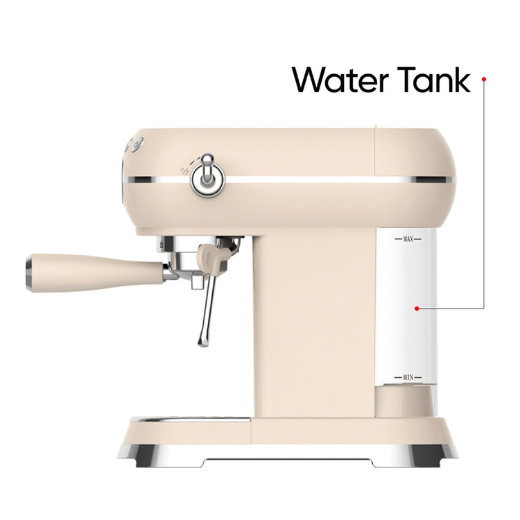 مخزن آب ۱.۵ لیتر دارد — حجم نسبتاً خوب برای اسپرسوساز خانگی، یعنی میتوان چند فنجان پشت سر هم درست کرد بدون اینکه هر بار مجبور باشی آب بریزی. مخزن آب جداشدنی است که کار پر کردن و شستشو را راحتتر میکند.