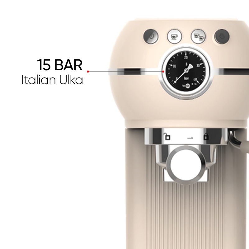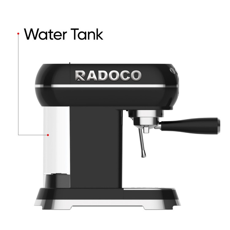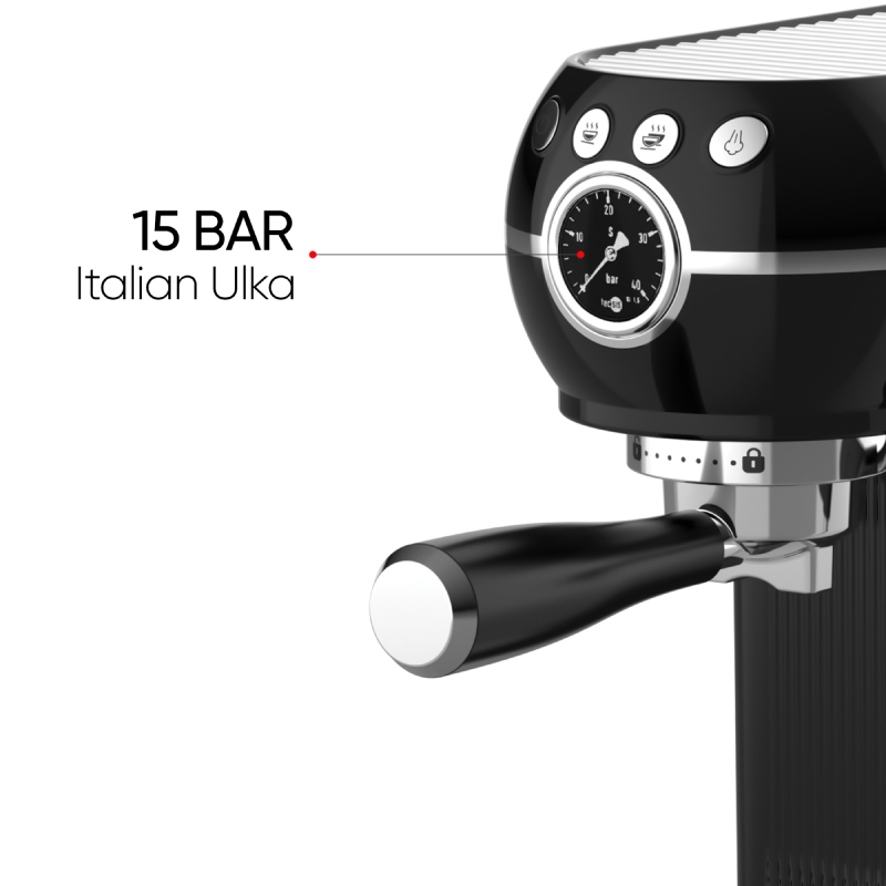 این مدل از RADOCO از پمپ ایتالیایی ULKA استفاده میکند که فشار ۱۵ بار تولید میکند. این فشار برای عصارهگیری اسپرسوی با غلظت مناسب و ایجاد “کرما” (crema) بدیهی است.