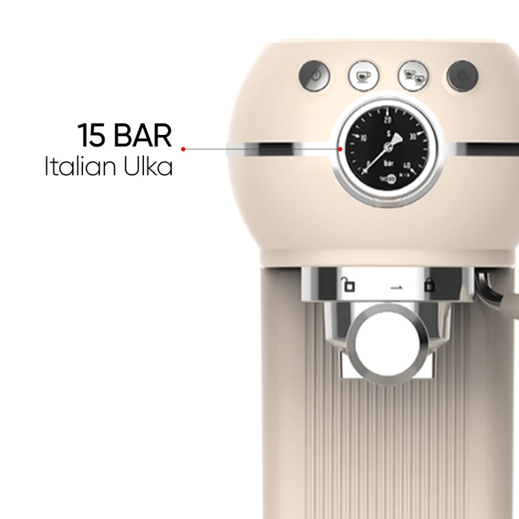 این مدل — مثل اغلب اسپرسوسازهای نیمهحرفهای خانگی — آسیاب قهوه داخلی ندارد. یعنی باید قهوه آسیابشده مناسب تهیه کنی، یا آسیاب جداگانه بخری. اگر قهوه آسیابشده با کیفیت/درست نداشته باشی، نتیجه اسپرسو خیلی تحت تأثیر قرار میگیرد.