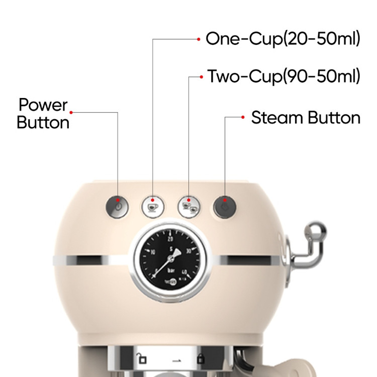 دستگاه دارای عملکرد “پیشدمآوری” (pre‑infusion) است: یعنی قبل از فشار اصلی، پودر قهوه با مقداری آب خیس میشود تا عصارهگیری یکنواختتر و با طعم/عطر بهتر انجام شود.