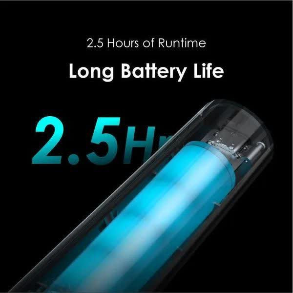 باتری داخلی قدرتمند این دستگاه در مدت زمان فقط ۹۰ دقیقه بهطور کامل شارژ میشود و تا ۲.۵ ساعت استفاده مداوم را پاسخگو است. بنابراین، حتی در سفر یا مواقعی که به برق دسترسی ندارید، میتوانید با اطمینان کامل از دستگاه استفاده کنید.