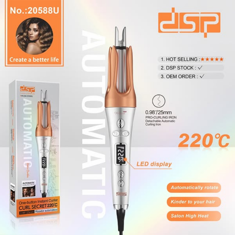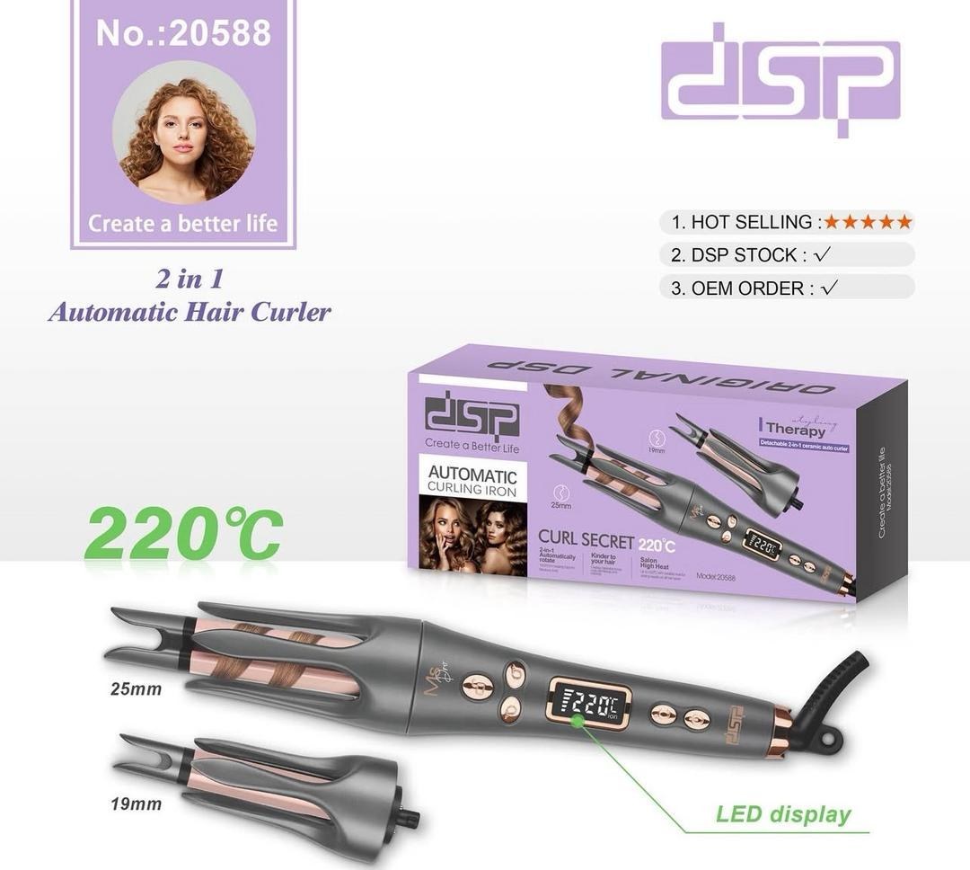 DSP 20588U دارای مکانیزم اتوماتیک چرخشی است که مو را به طور یکنواخت داخل میله حرارتی میکشد و فرهای نرم و طبیعی ایجاد میکند. قابلیت چرخش به دو سمت راست و چپ باعث میشود فرها شکل حرفهای و متنوع داشته باشند و کاربر بتواند مدلهای مختلفی از موج و فر مو را به راحتی ایجاد کند. این ویژگی به ویژه برای کسانی که تجربه کمی در فر کردن مو دارند، بسیار مناسب است و خطاهای معمول در فر کردن دستی را کاهش میدهد.