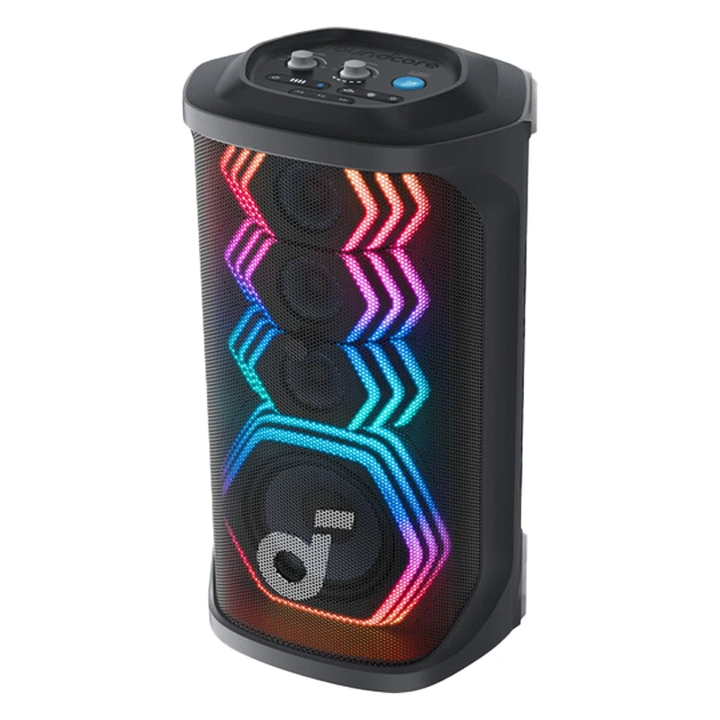 نورپردازی RGB چندحالته با ریتم موسیقی هماهنگ میشود و فضای مهمانی را کاملاً زنده میکند. افکتهای نوری متنوع از طریق دکمههای روی دستگاه یا اپلیکیشن Soundcore قابل کنترل هستند و جلوهای حرفهای به محیط میدهند.