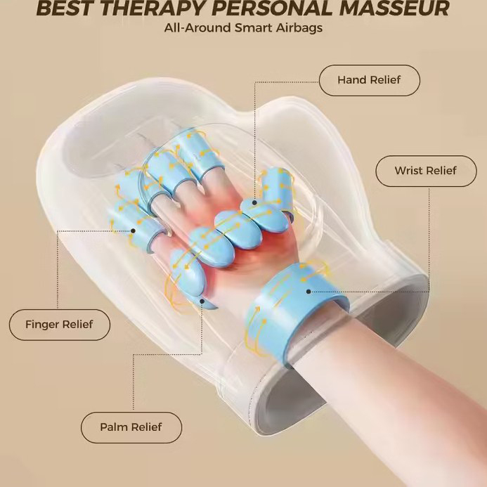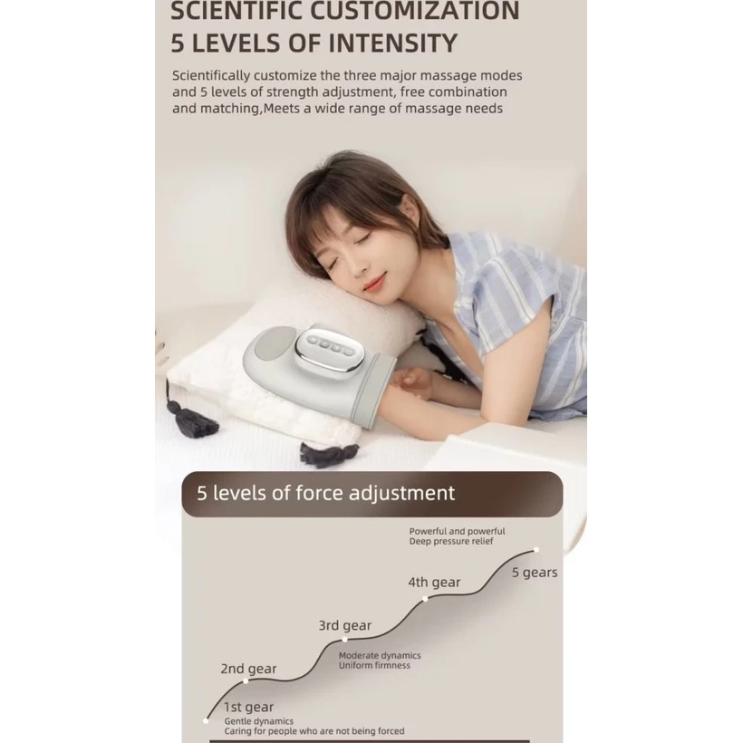 این ماساژور با استفاده از کیسههای هوای فشردهسازیشده اطراف دست را میگیرد و با اعمال فشار ملایم تا قدرتمند، تجربه ماساژ شبیه به ماساژ دستی واقعی ایجاد میکند. همزمان، گرمایش سهمرحلهای باعث افزایش گردش خون، شل کردن عضلات و کاهش سفتی میشود.