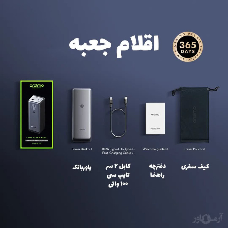 پاوربانک، کابل 100W USB-C، کیف حمل، دفترچه راهنما