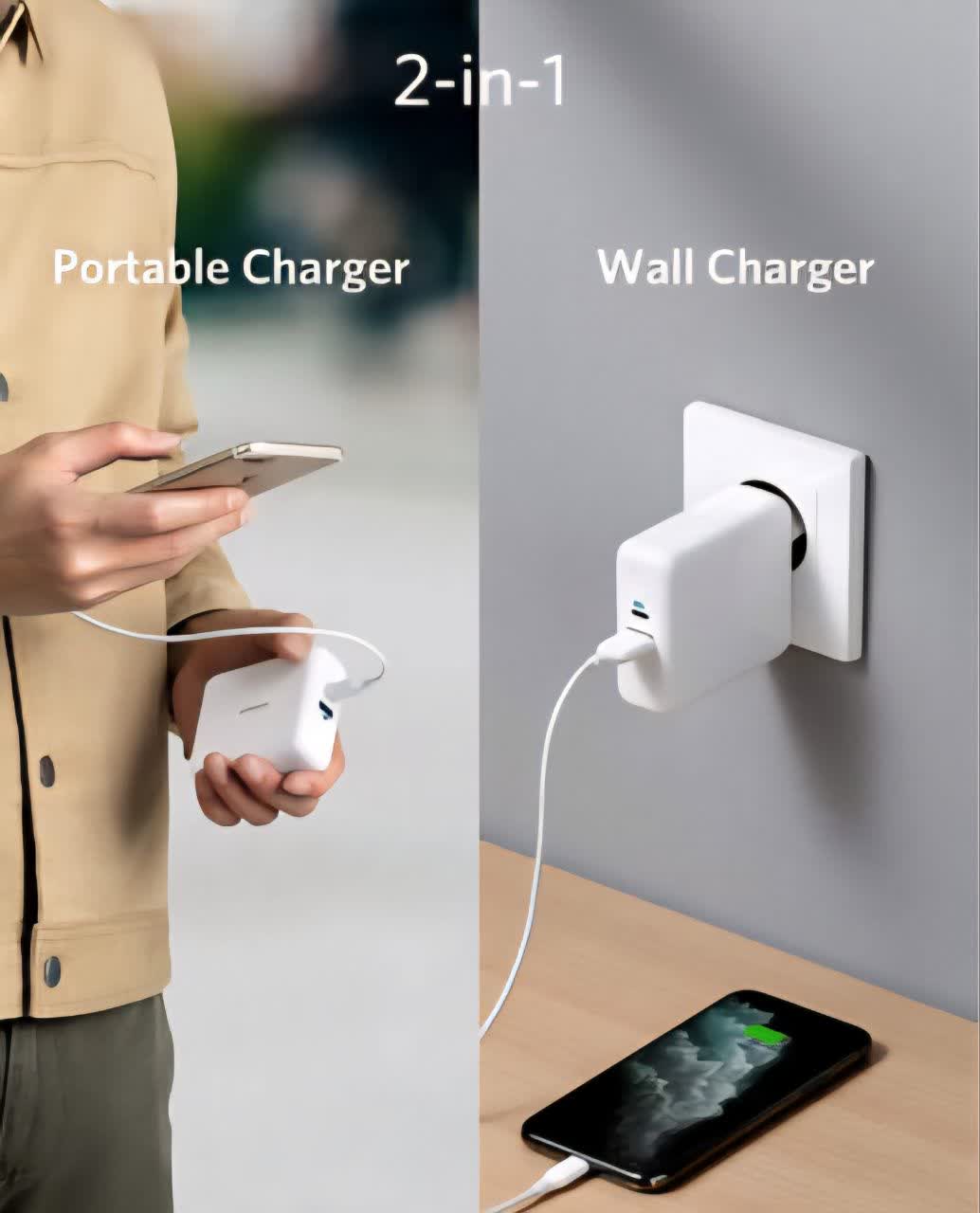 ترکیبی از شارژر دیواری + پاوربانک