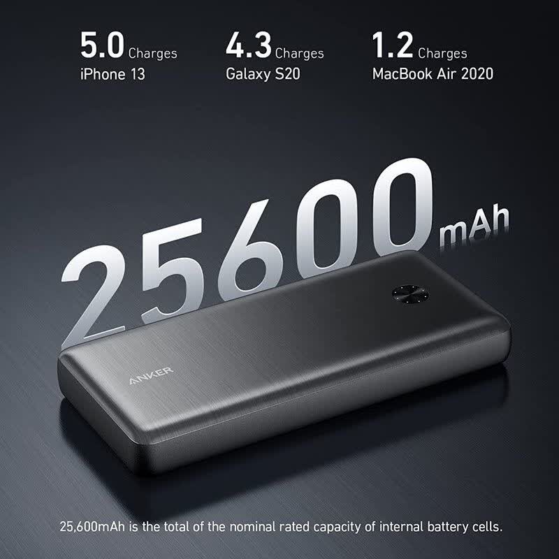 در قلب این دستگاه یک باتری لیتیوم-یونی (Li-ion) با ظرفیت اسمی 25600mAh قرار گرفته است که میتواند چندین بار گوشیهای هوشمند، تبلتها و حتی لپتاپها را شارژ کند. ظرفیت واقعی باتری بسته به نوع دستگاه مصرفکننده معمولاً بین 15,000 تا 16,000 میلیآمپر ساعت خواهد بود. این میزان ظرفیت برای سفرهای طولانی، استفاده روزمره و مواقع اضطراری ایدهآل است.