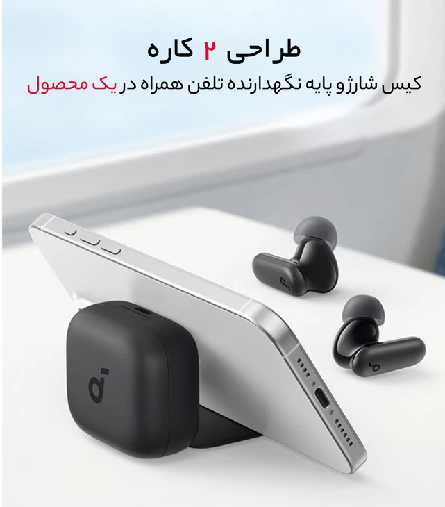 یکی از نقاط قوت هدفون انکر R50i NC طراحی مینیمال و کاربردی آن است. ابعاد این هدفون ۱۰.۸x۱۰.۸x۳.۶ میلیمتر بوده و وزن آن تنها ۱۰۰ گرم است. طراحی ارگونومیک و سبک این محصول باعث میشود که در استفاده طولانی مدت گوشهای شما اصلا احساس خستگی نکنند. همچنین، همراه داشتن سریهای سیلیکونی اضافی به شما امکان میدهد که بهترین سایز را برای گوش خود انتخاب کنید. ویژگی جذاب دیگر، وجود پایه نگهدارنده موبایل به صورت مخفی در محفظه شارژ است. این ویژگی کوچک اما کاربردی نشان میدهد که انکر به جزئیات محصول توجه ویژهای داشته است. هدفون انکر R50i NC با درایورهای ۱۰ میلیمتری، صدایی با کیفیت بالا و باس قدرتمند ارائه میدهد. فناوری BassUp به کار رفته در این هدفون، عمق و قدرت باسها را افزایش داده است. این هدفون برای علاقهمندان به موسیقی که به دنبال صدای غنی و شفاف هستند، یک انتخاب مناسب است. برجستهترین ویژگی این هدفون، قابلیت نویز کنسلینگ فعال (ANC) است که تا ۴۲ دسیبل نویزهای محیطی را کاهش میدهد. همین قابلیت انکر R50i NCرا به یک همراه عالی در فضاهای شلوغ و پر سر و صدا تبدیل میکند.