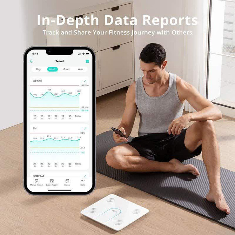یکی از مزیتهای اصلی این ترازو، اتصال هوشمند Wi-Fi و Bluetooth است که امکان همگامسازی دادهها با اپلیکیشن EufyLife و سرویسهای سلامت محبوب مانند Apple Health، Google Fit و Fitbit را فراهم میکند. همچنین ترازو میتواند دادههای چندین کاربر را بهصورت همزمان ذخیره کند و روند پیشرفت سلامتی هر فرد را جداگانه پیگیری نماید، بنابراین برای خانوادهها، باشگاهها یا محیطهای کاری که چند کاربر دارند بسیار مناسب است.